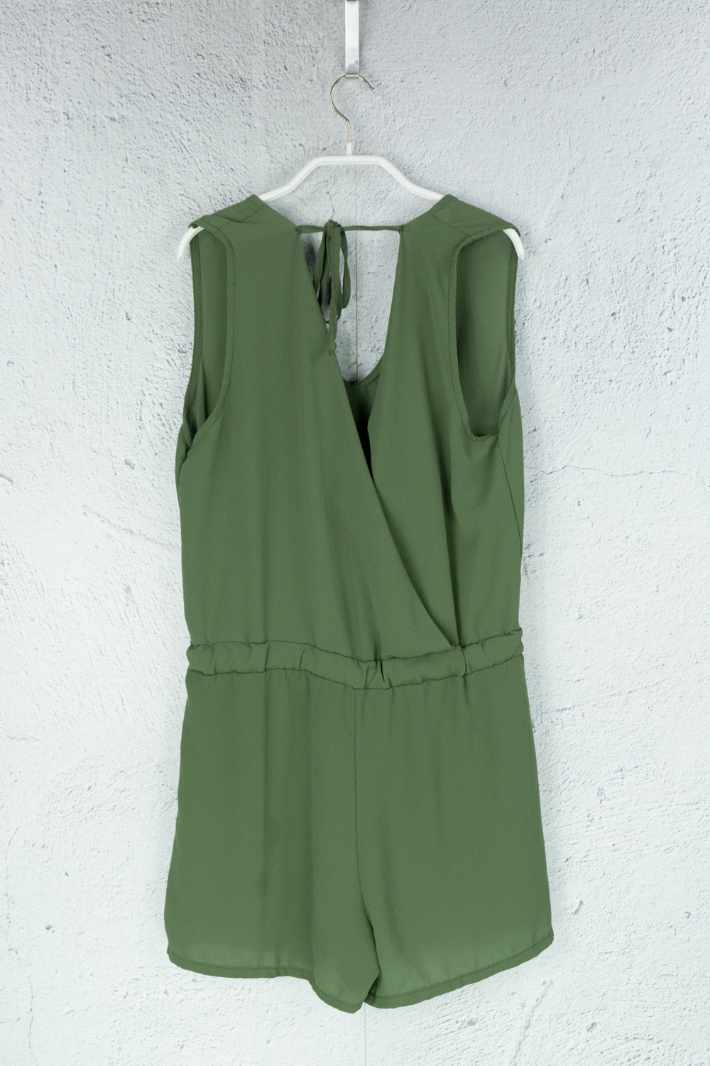 Kurzer Jumpsuit in grün mit integriertem Hüftgürtel mehr