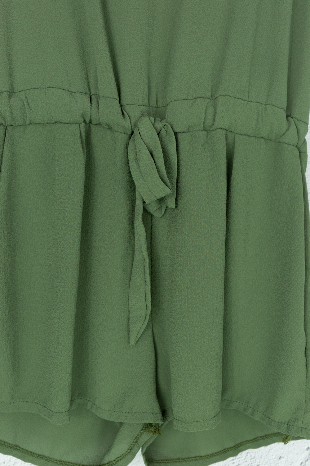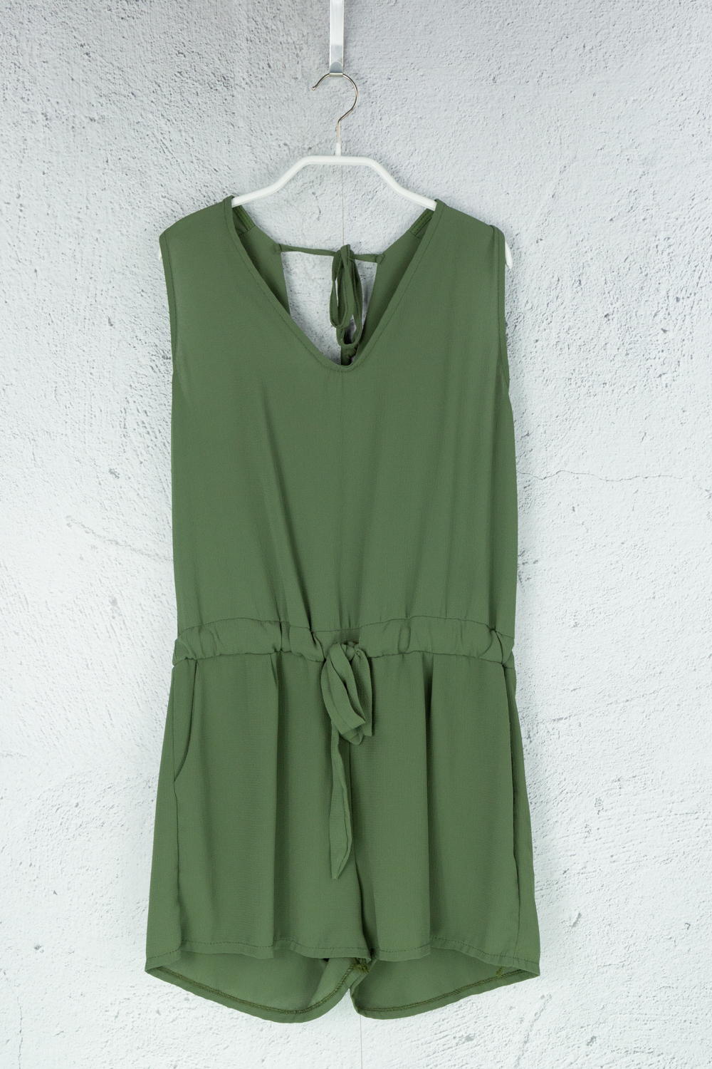 Kurzer Jumpsuit in grün mit integriertem Hüftgürtel