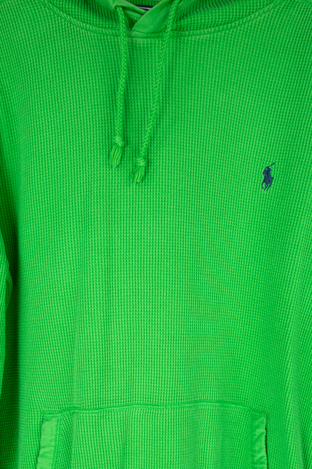 Grüner Kapuzenpullover mit Waffelgewebe und Fronttasche