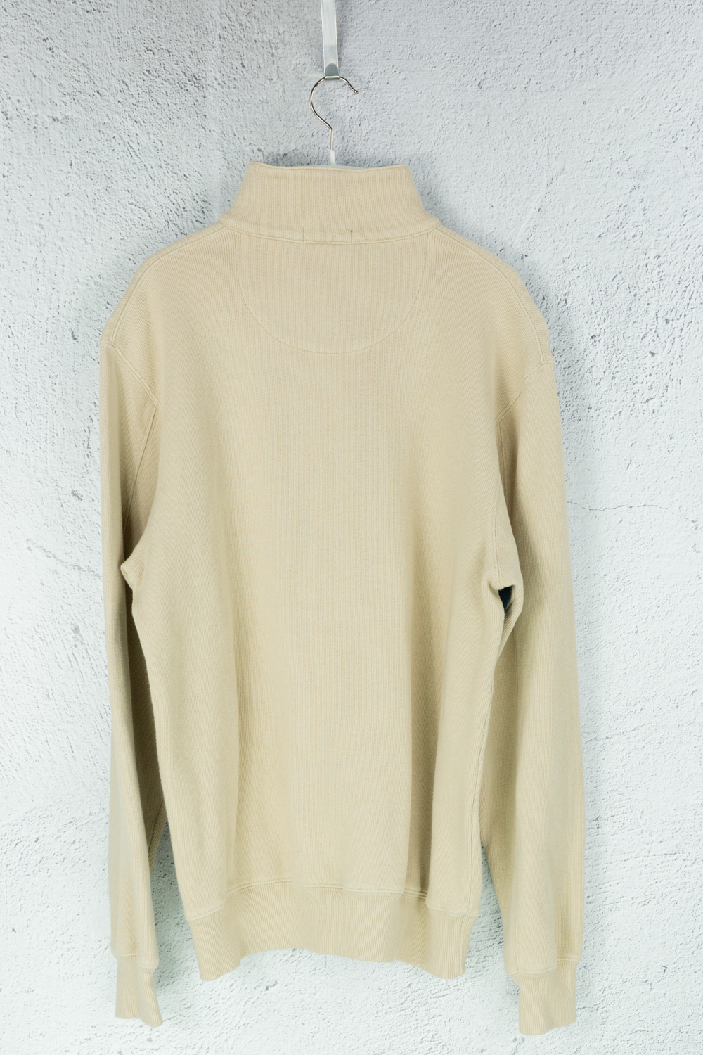 Beiger Baumwollpullover mit Stehkragen und Streifen mehr