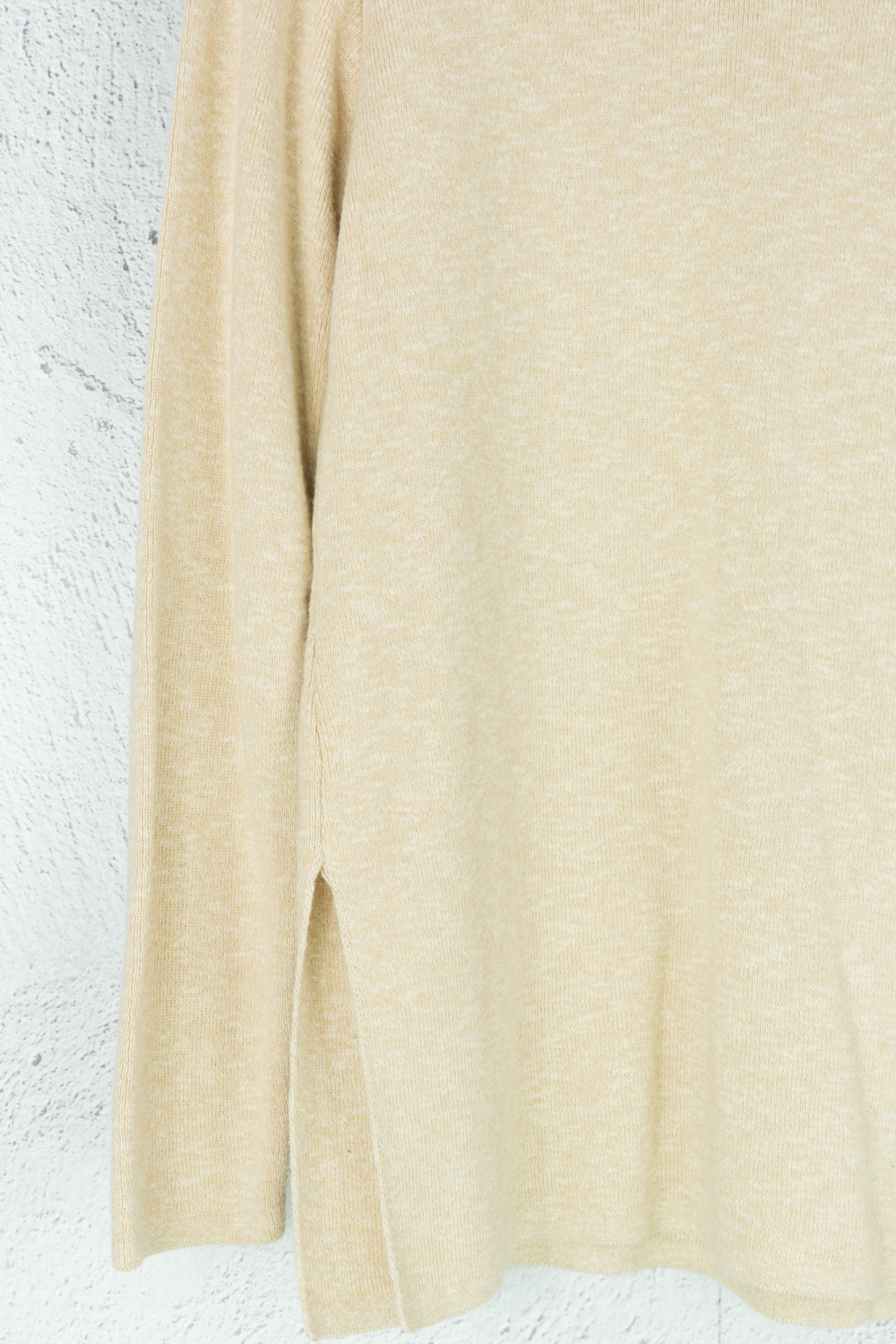Beiger Stickpullover aus Baumwolle mit seitlichen Schlitzen