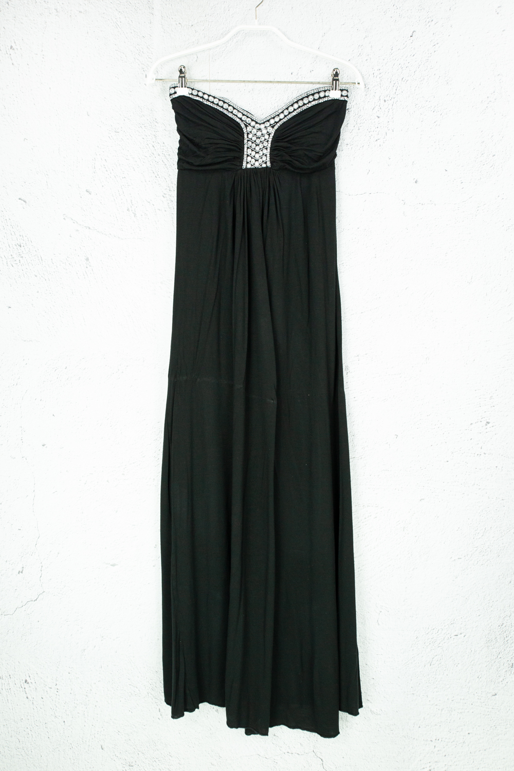 Schwarzes besticktes Schlauchkleid aus Baumwolle