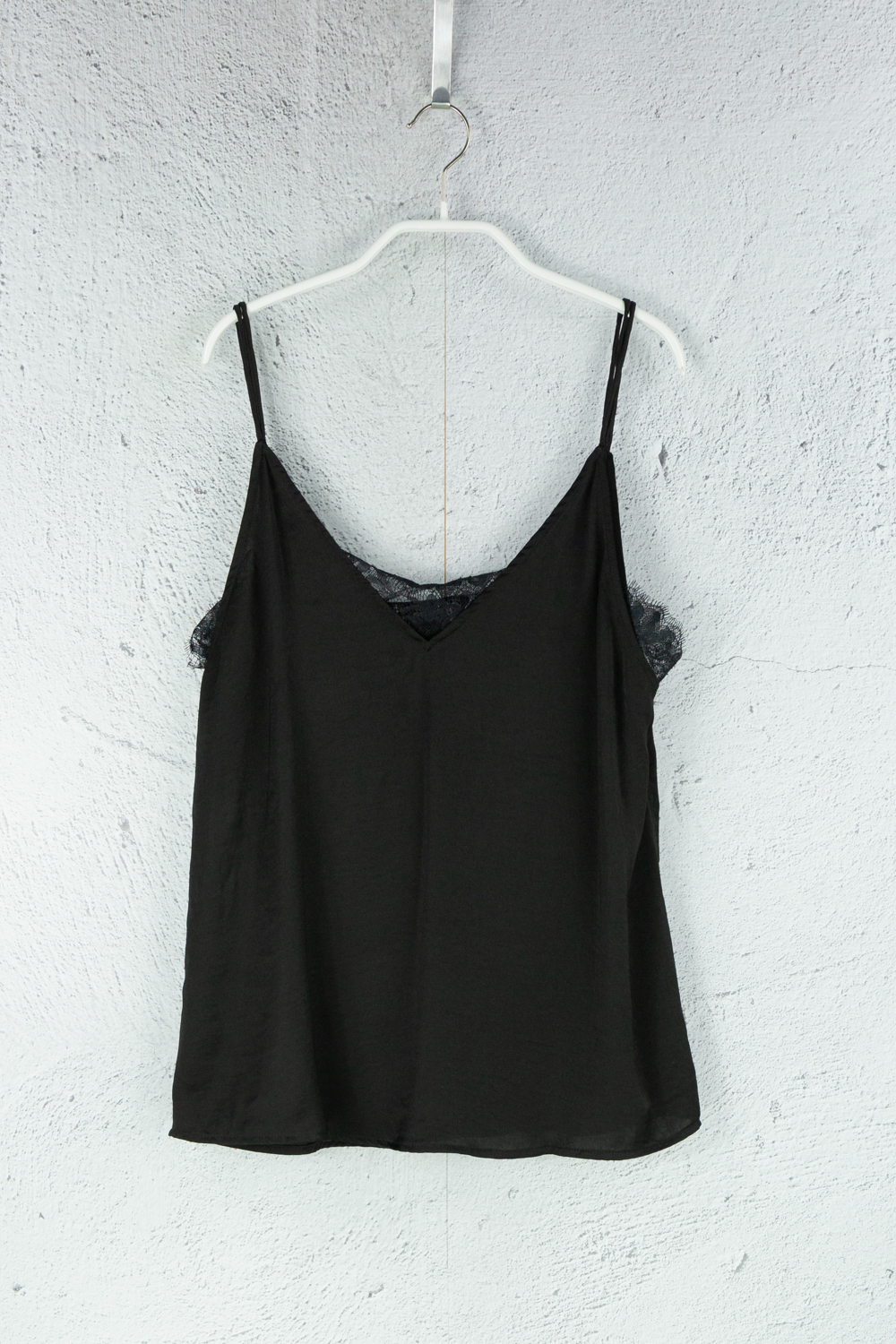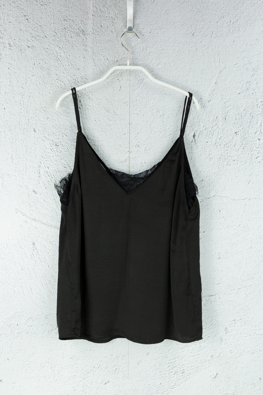Träger Top schwarz mit Spitzen Einlage aus Polyester