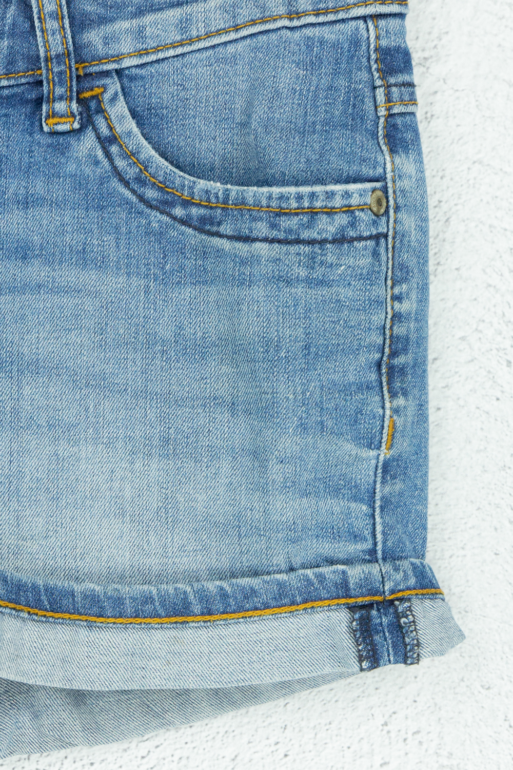Hellblaue Shorts mit gekrämpeltem Saum aus Baumwolle und Elastan