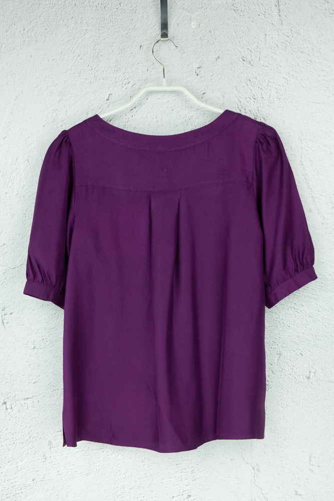 Lila farbige Bluse mit Masche aus Seide