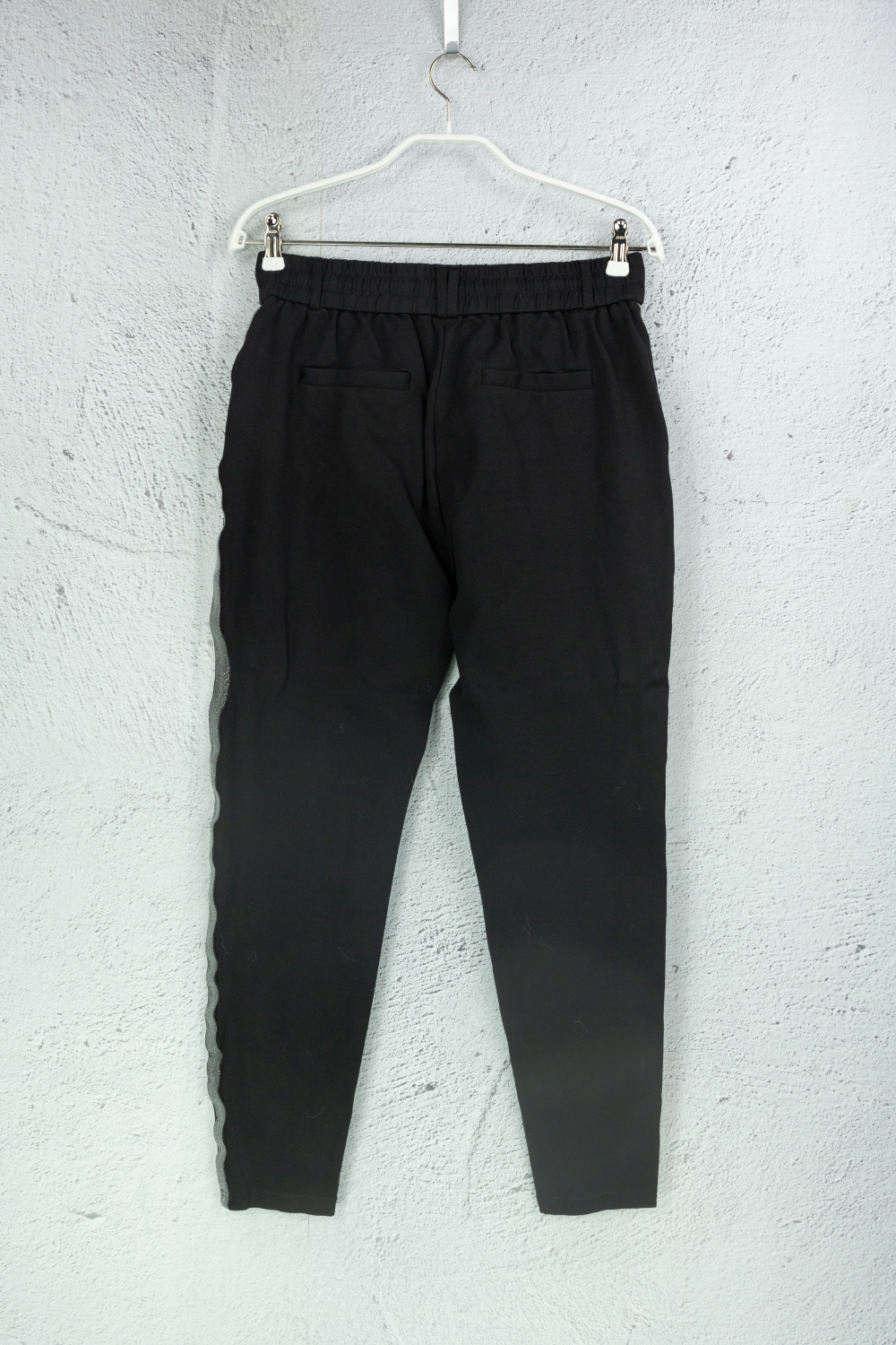 Schwarze Jerseyhosen mit Silberstreifen an der Seite mehr