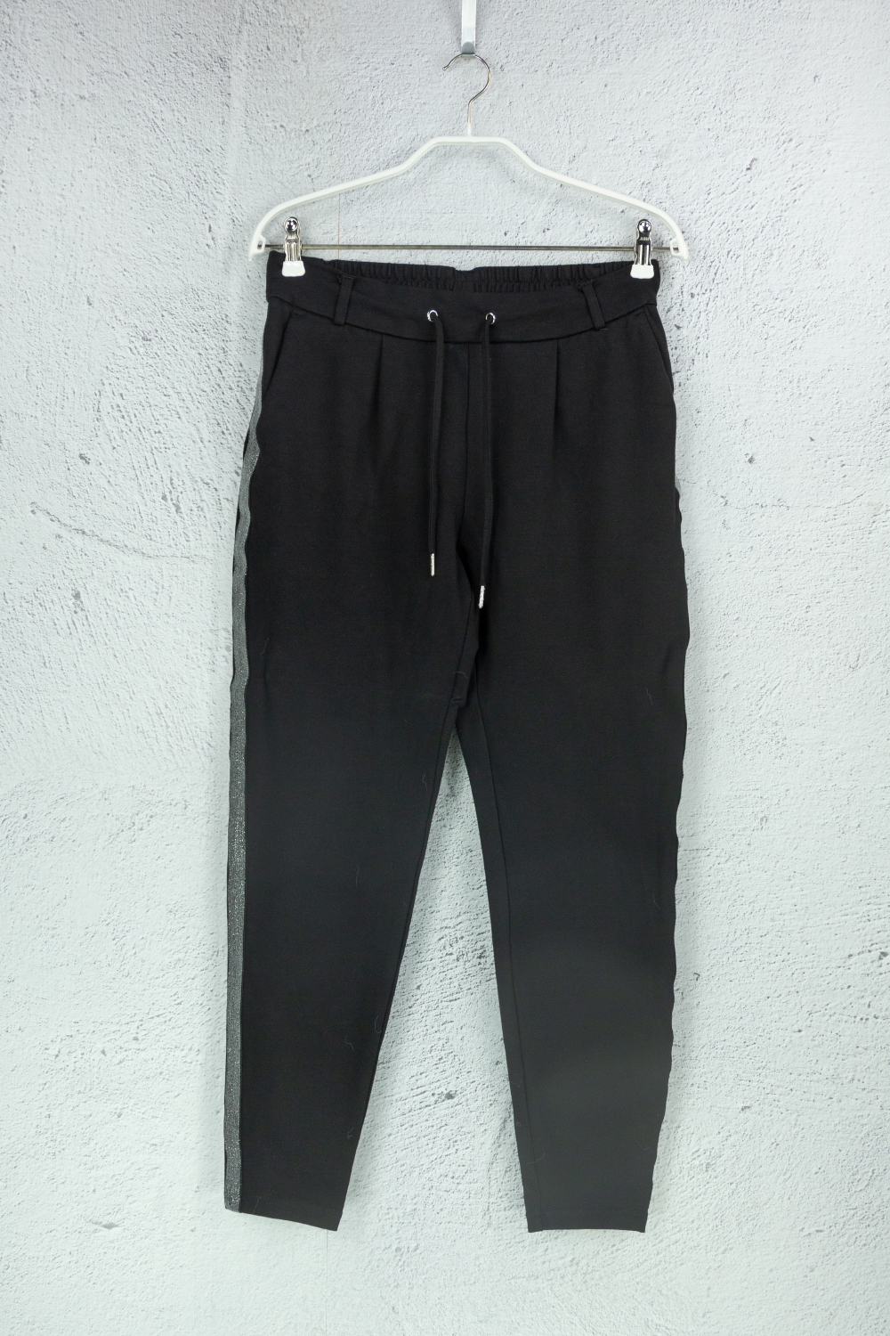 Schwarze Jerseyhosen mit Silberstreifen an der Seite