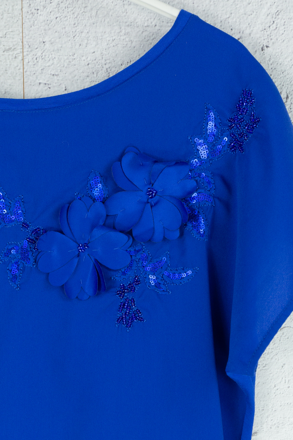 Elegantes blaues T-Shirt mit bestickten Blumen