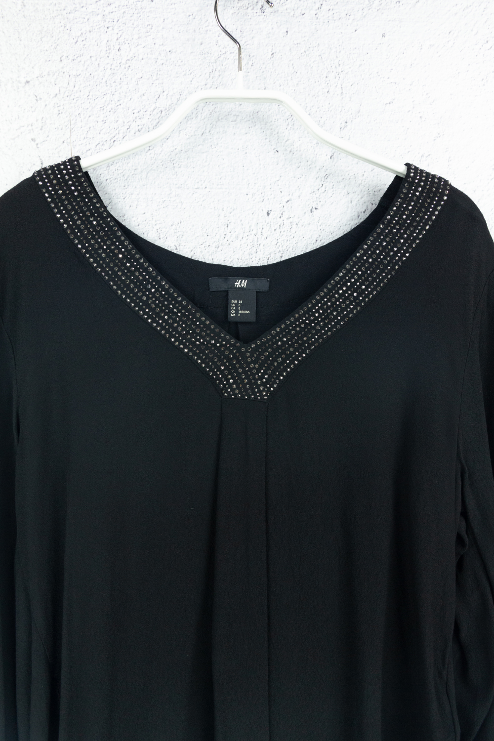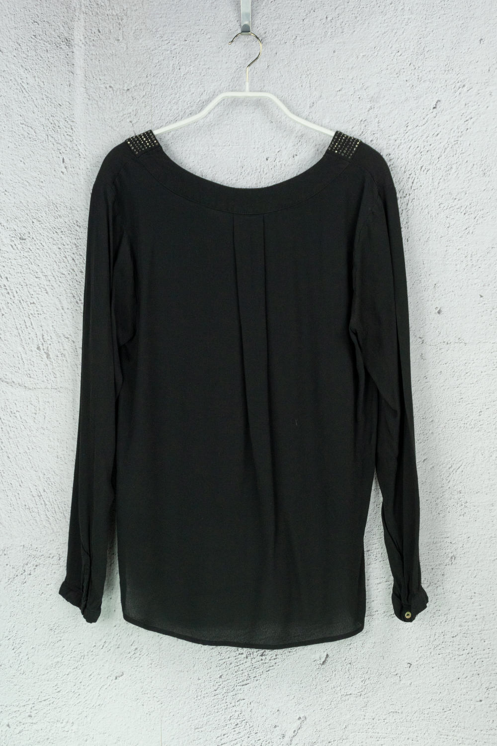 Schwarze elegante Bluse mit kleinen Metallsteinen mehr