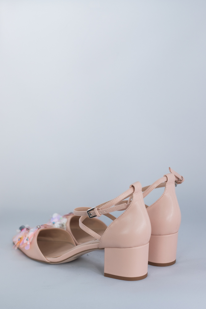 Spitze Riemchensandalen mit Blumenpailletten