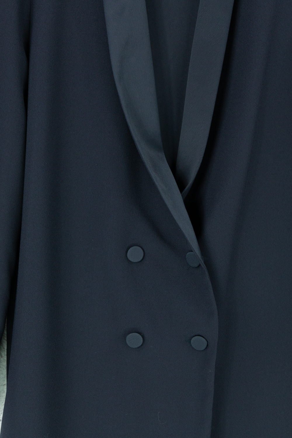 Mantel dunkelblau mit Satin Rever aus Polyester