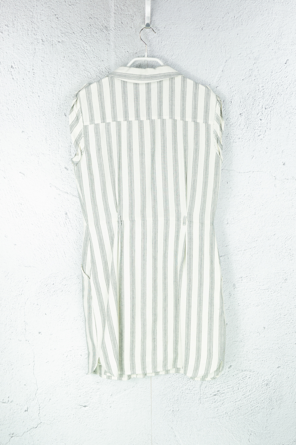 Kleid beige gestreift mit geflochtenem Gürtel Knielang aus Baumwolle