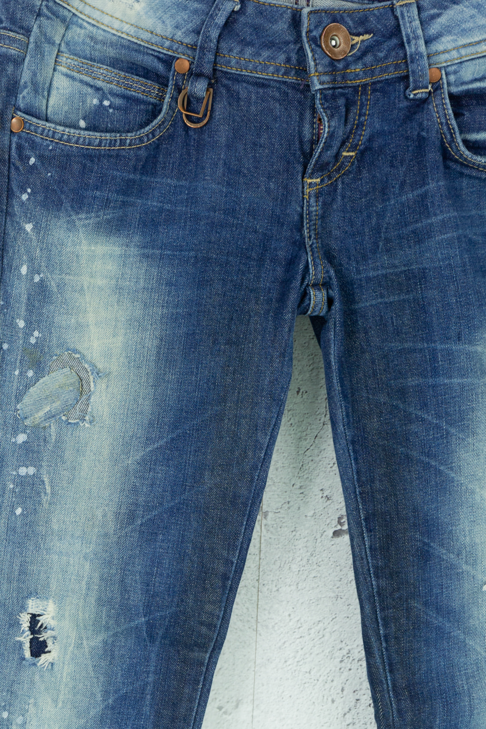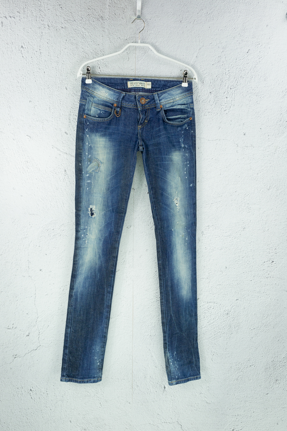 Dunkelblaue Jeanshose aus Baumwolle im Used Look