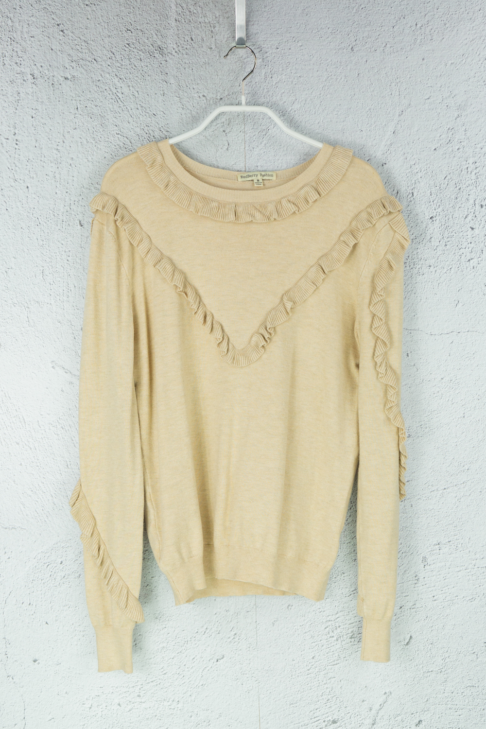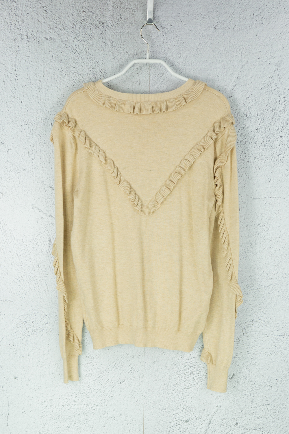 Beiger Pullover mit Volants
