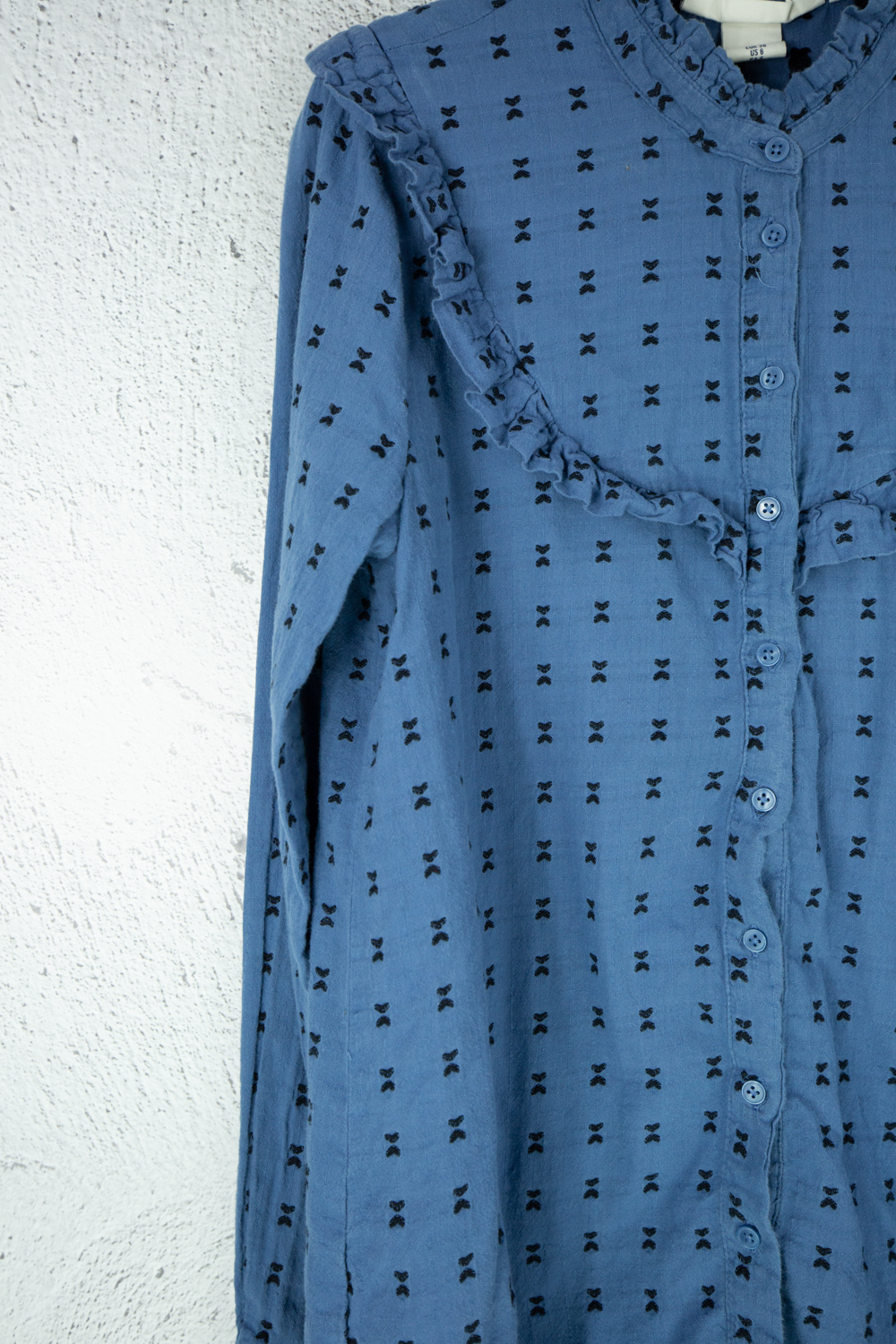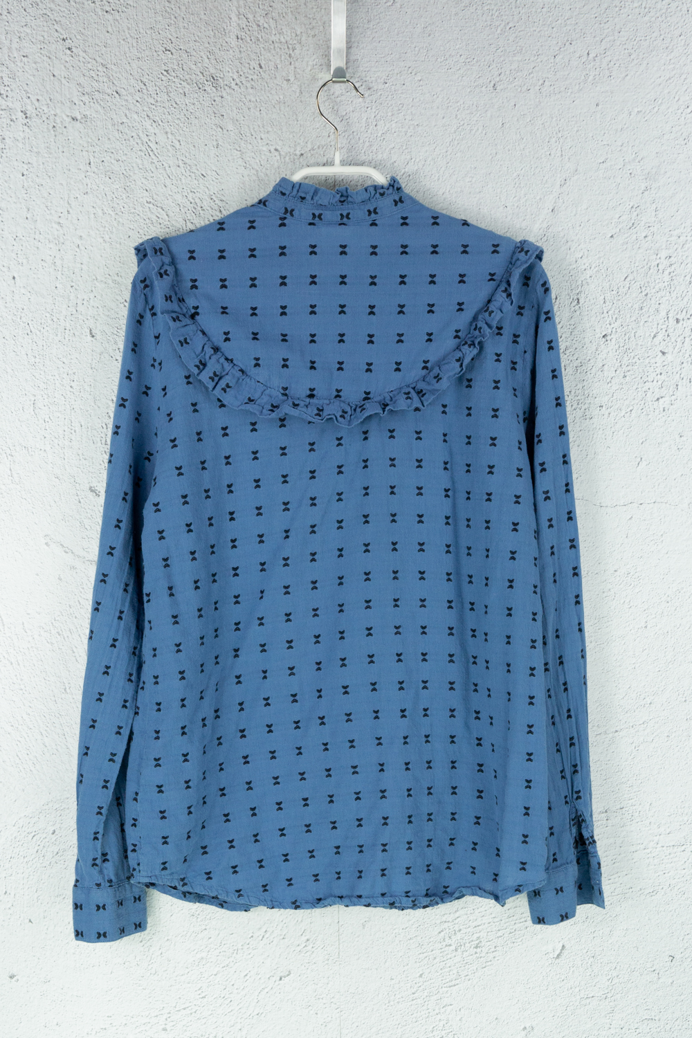 Bluse dunkelblau Mit Rüschen versehen aus Baumwolle